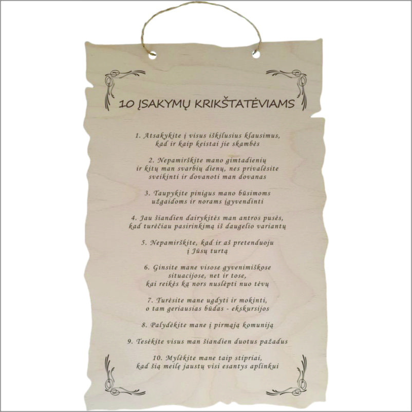 Puikus pasiūlymas visiems mėgstantiems išskirtines, originalias dovanas. Lazeriu išgraviruota medinė lentelė su žodžiais, tai puiki simbolinė dovana Krikšto tėveliams.