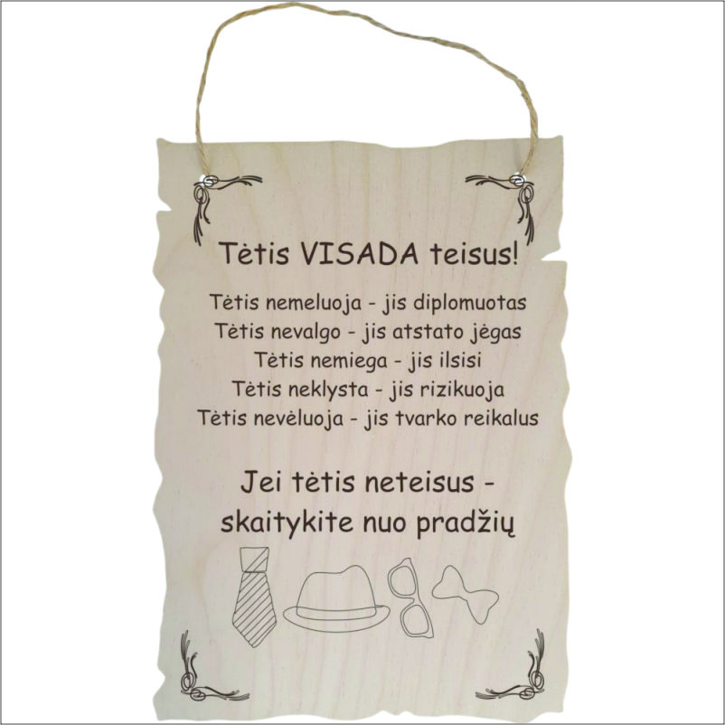 Puikus pasiūlymas visiems mėgstantiems išskirtines, originalias dovanas. Lazeriu išgraviruota medinė lentelė su išgraviruotais žodžiais, tai puiki simbolinė dovana.