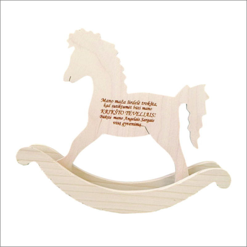 Medinis, supamas arkliukas su išgraviruotais žodžiais būti Krikšto tėveliais. Subtilus, paprastas, bet kartu ir elegantiškas kvietimas.